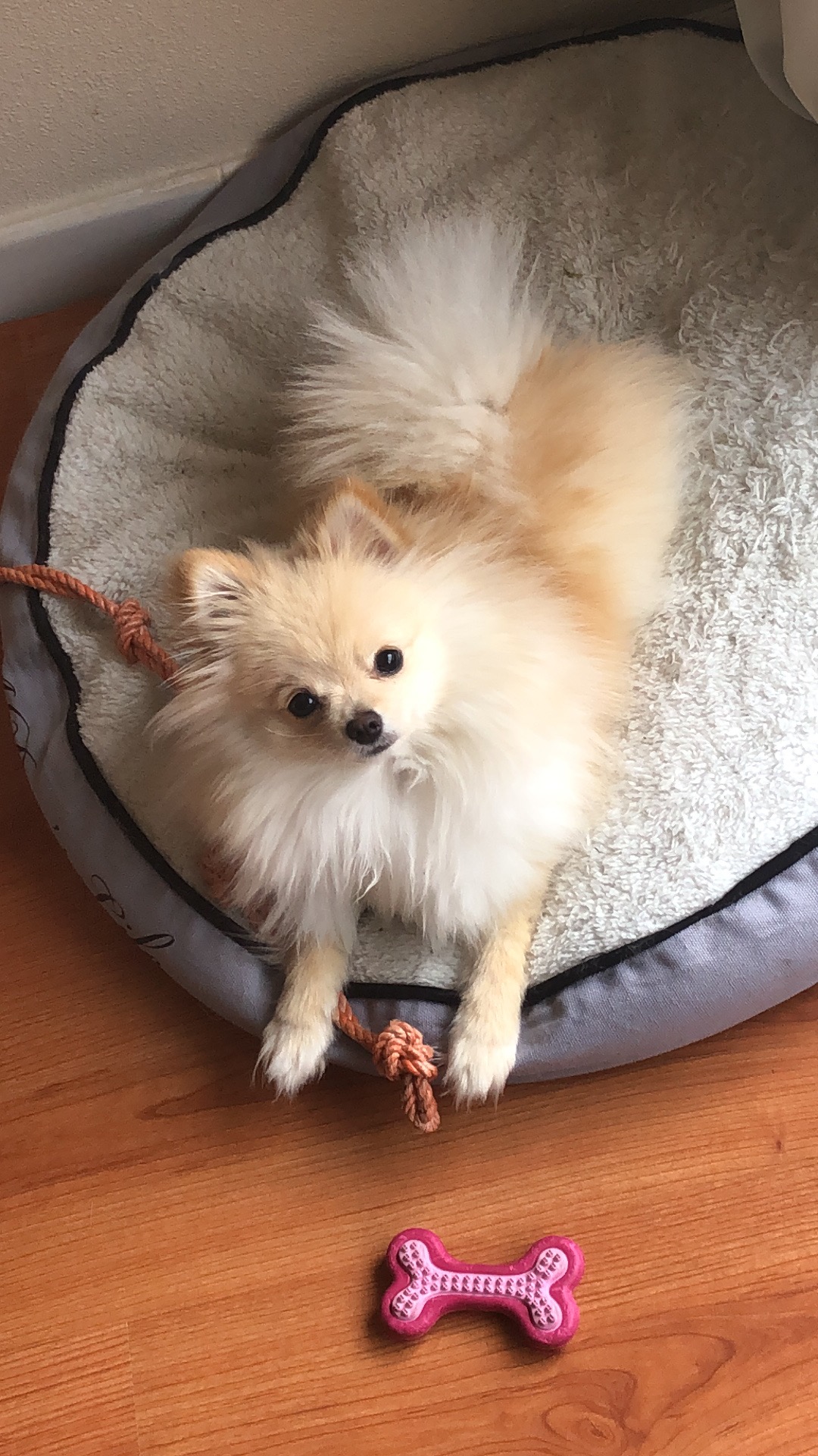 Ondertussen zijn wij de beste vriendjes ze is heel sociaal naar mensen toe komt altijd goeidemorgen en goedeavond zeggen met een klein likje ze is ook zeer slim en weet ook wat ze wil, ze is een klein maar fijn lief pomeriaantje waar ik nooit meer zonder zou kunnen